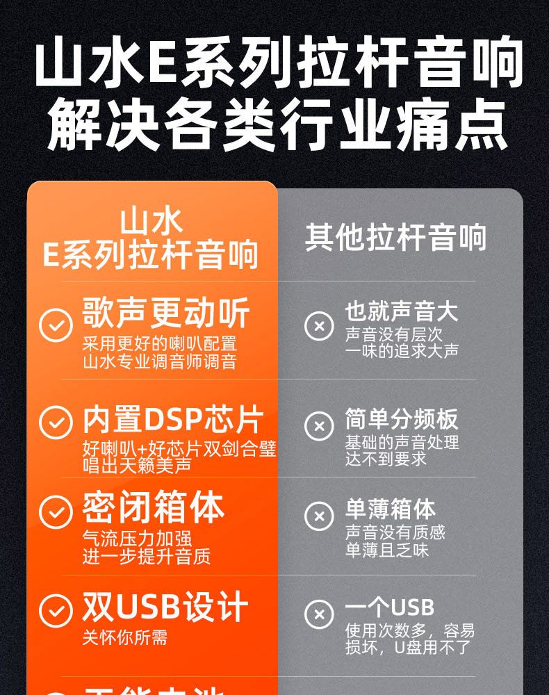 双USB/SD/FM/蓝牙 5.0 多种输入;