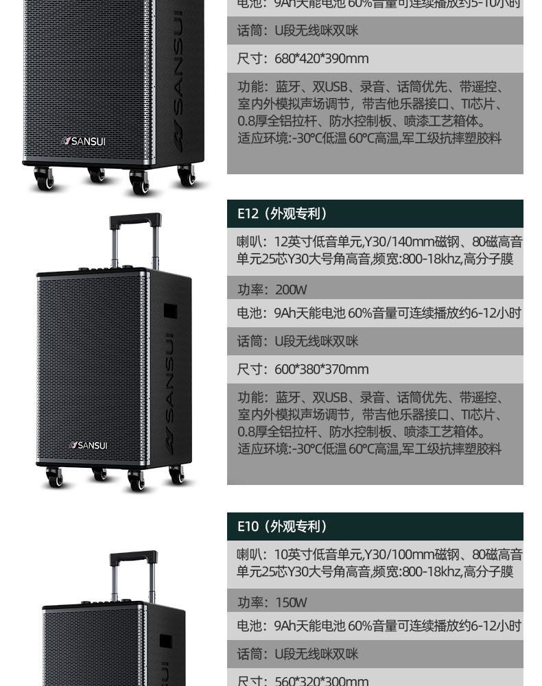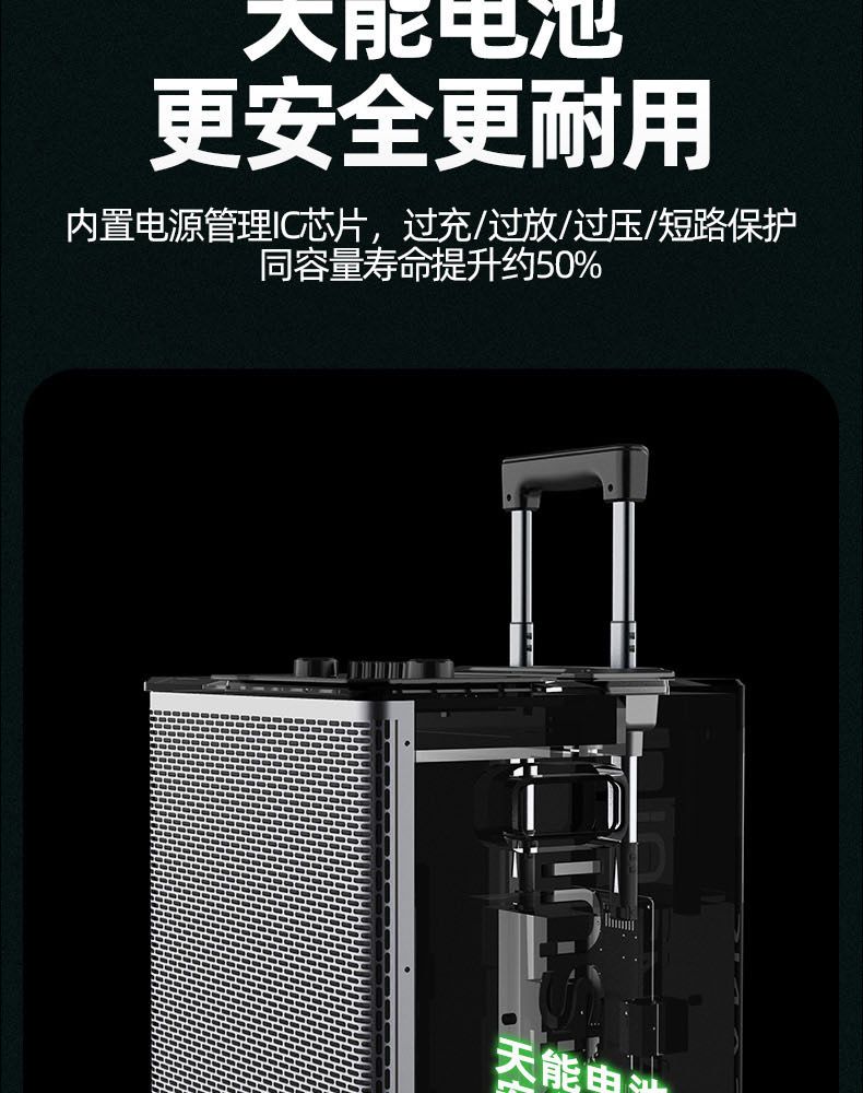 11 智能供电系统;铝制拉杆,高纤维 12mm 木质箱;