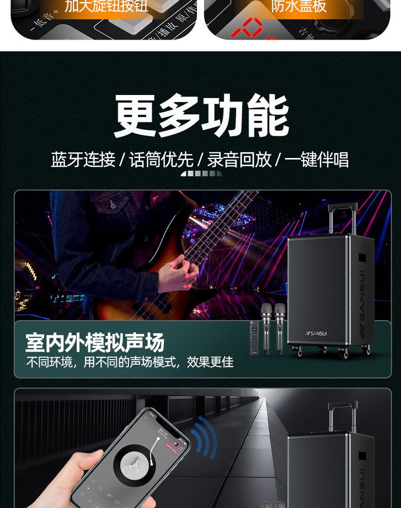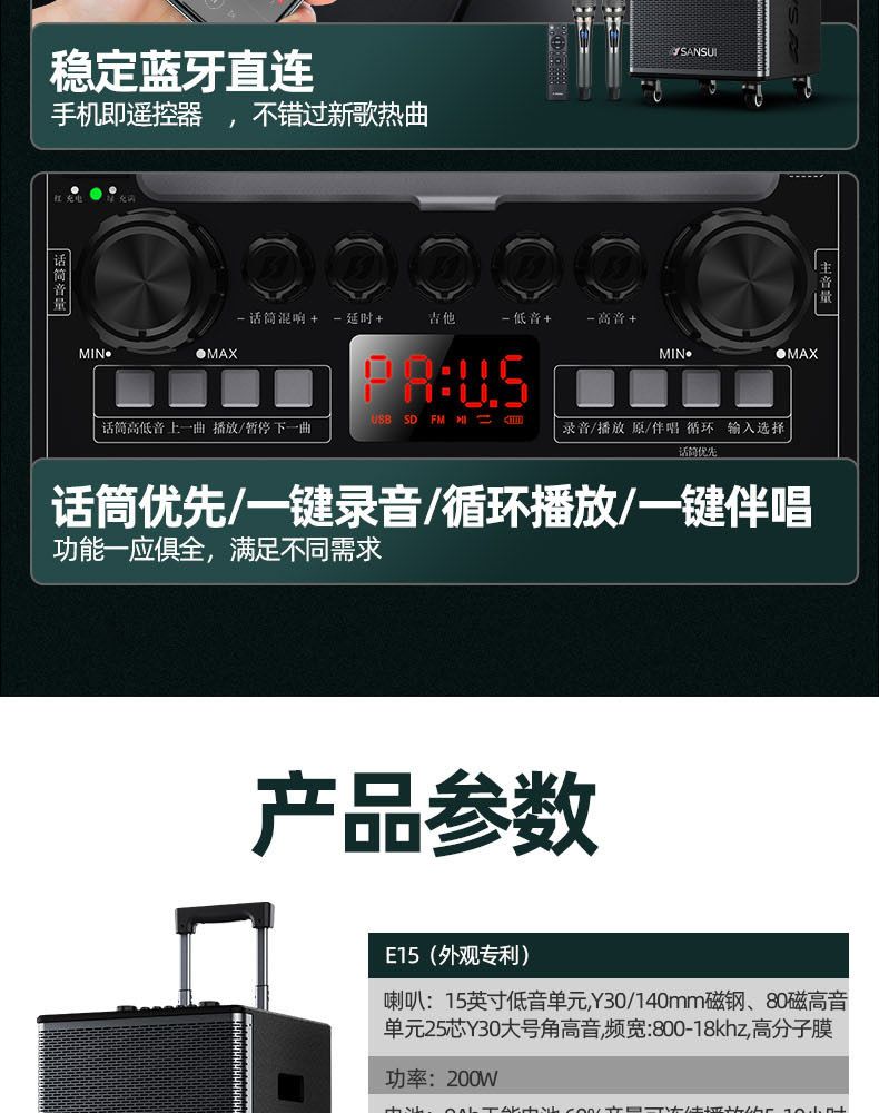 4.可外接副箱,单声道/立体声自由切换;